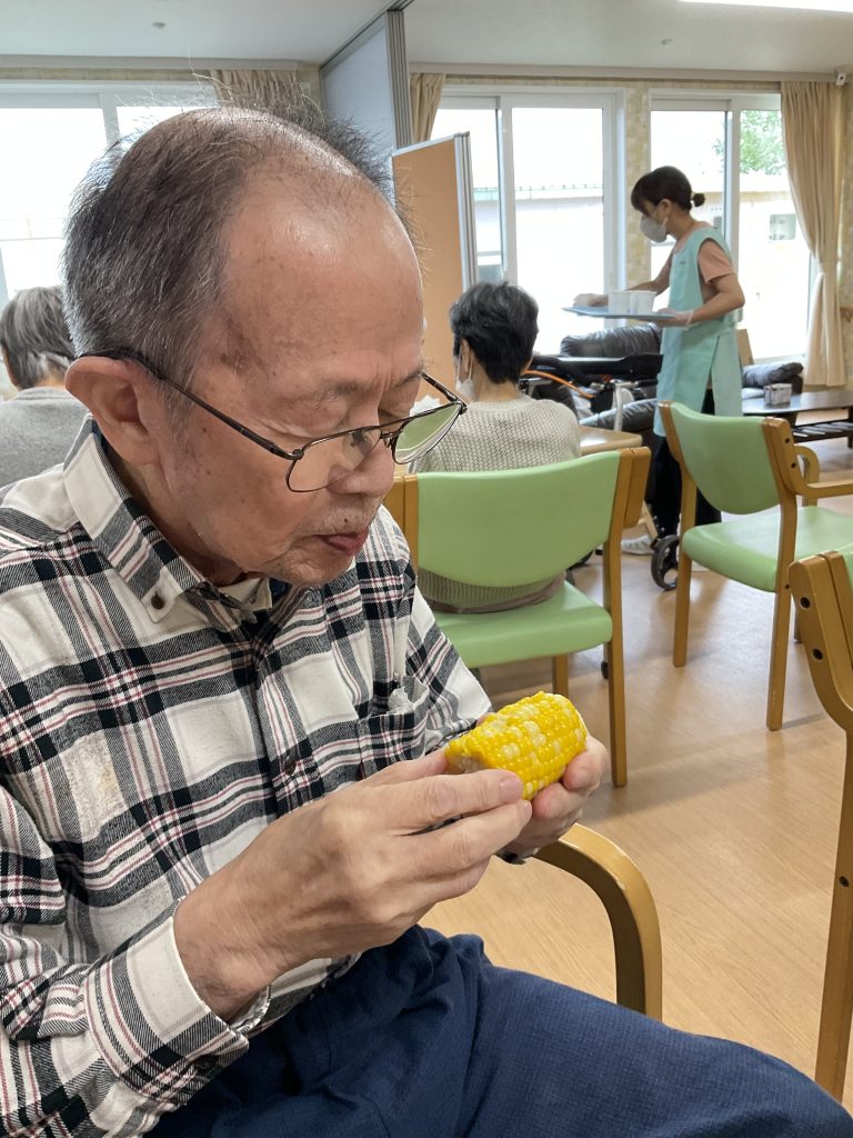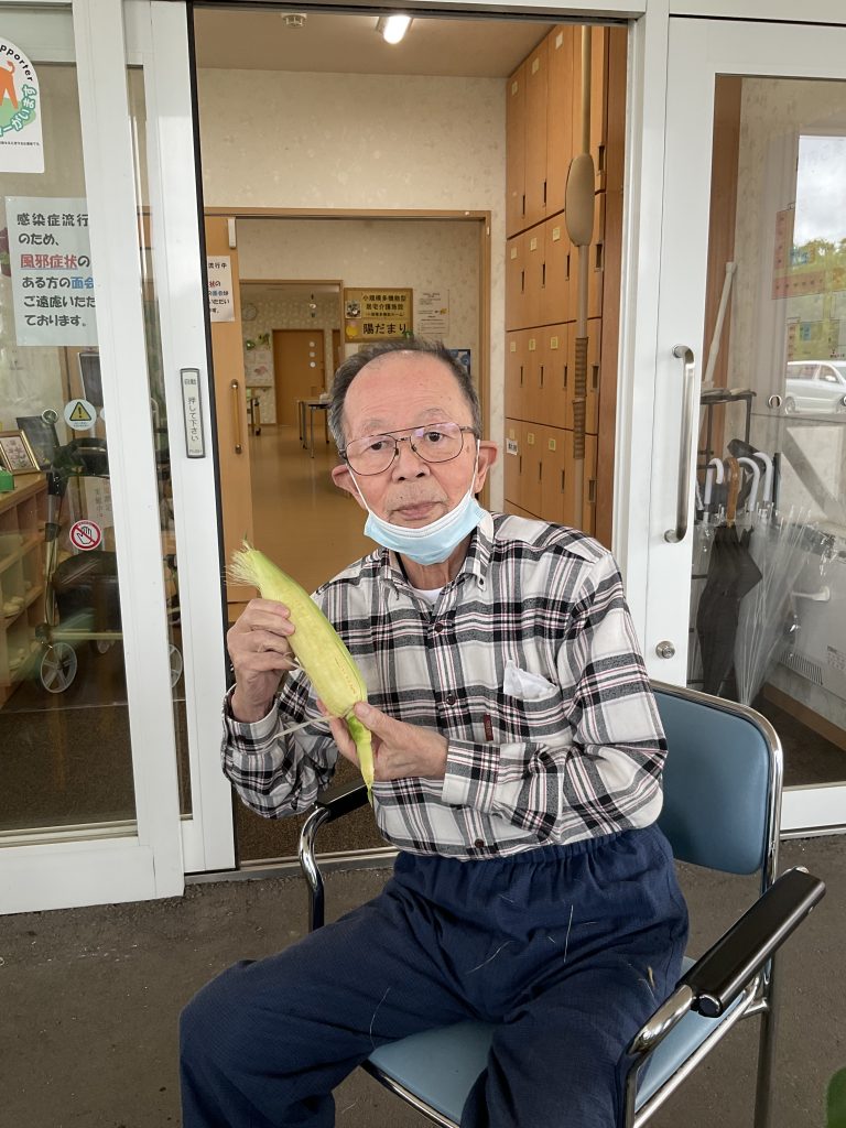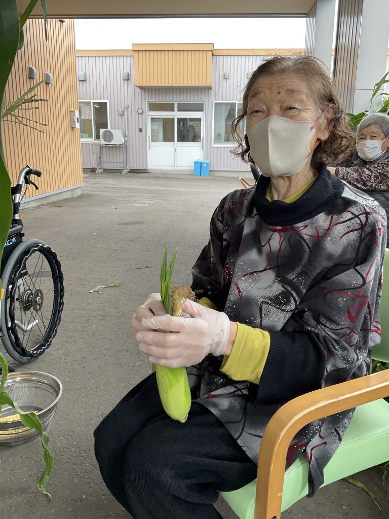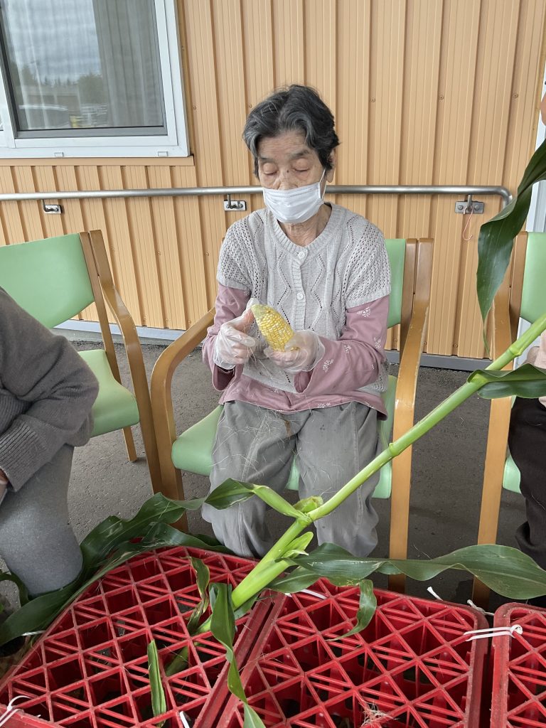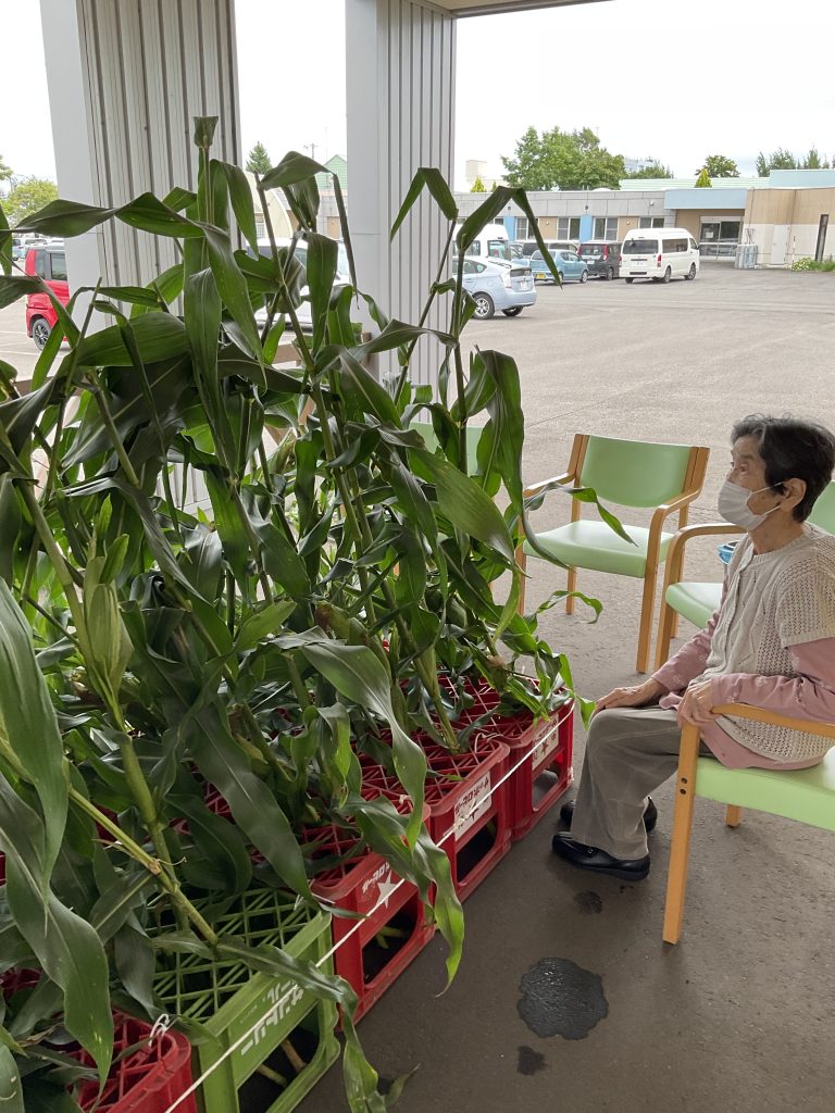 ビールケースに差し込まれている”生育した とうきび そのままの状態”から、とうきびを収穫しました。
